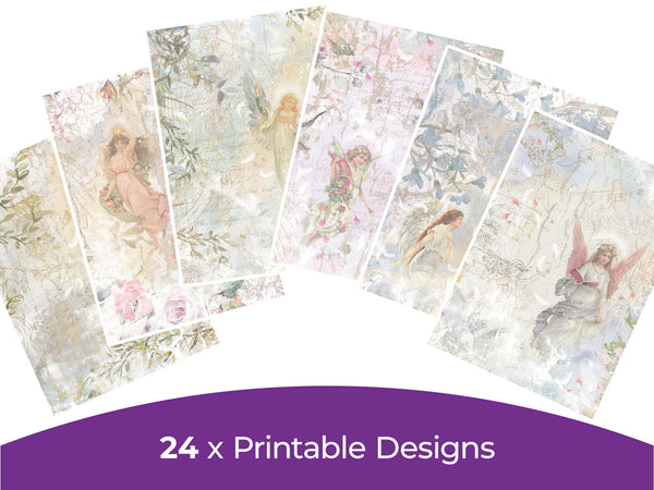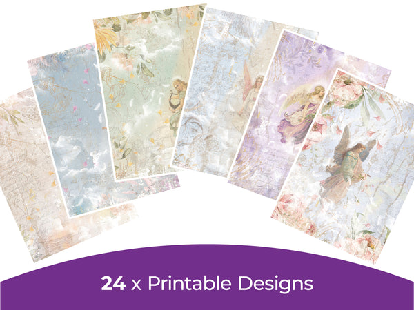 Bring the spirit of the heavens into your crafting with the Angel Collection Digital Paper Pad by Crafters Companion. All 24 designs capture the serenity of classical angelic figures, with soft watercolour tones and a serene atmosphere surrounded by clouds, floral garlands, and delicate accents. The dreamy palette of sky blue, soft lilac, rose, and dawn yellow creates a celestial feel.