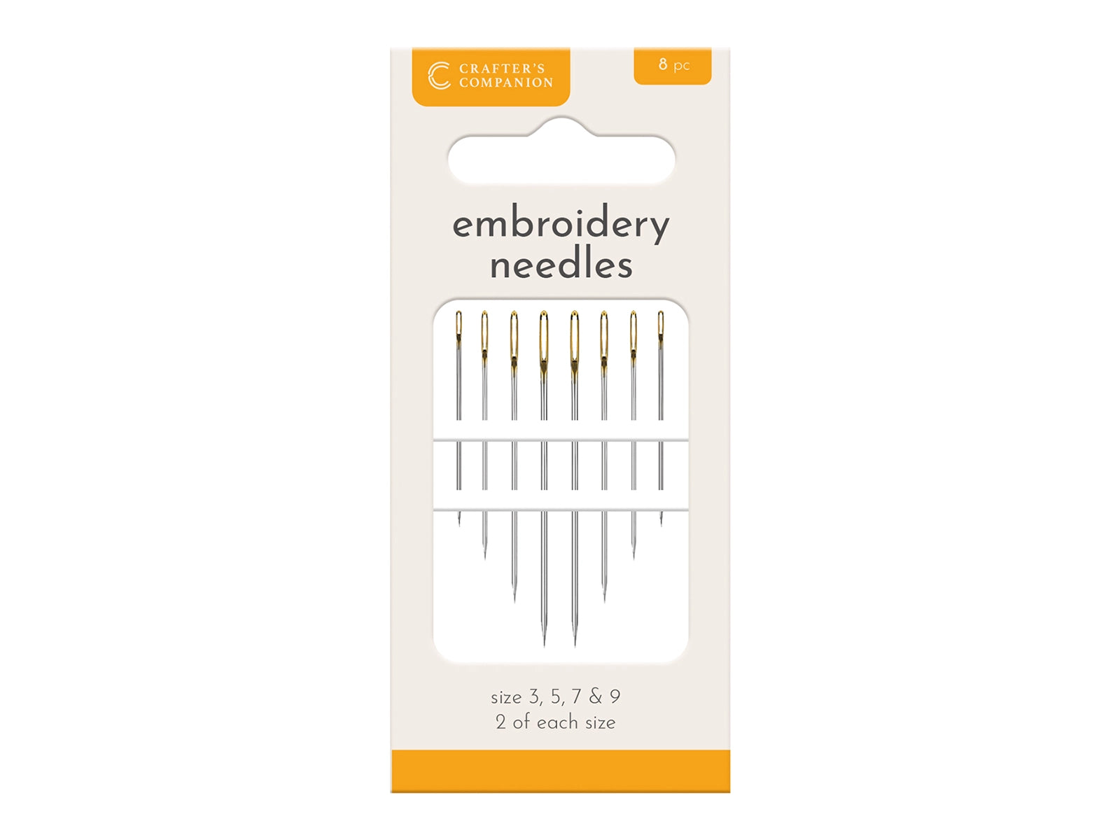 The Crafter’s Companion Embroidery Needles 8pk includes needles of all sizes perfect for your stitching and embroidering needs. This 8-piece set includes two needles of each size, ranging from 3 to 9, so you can be prepared for all projects and crafts.