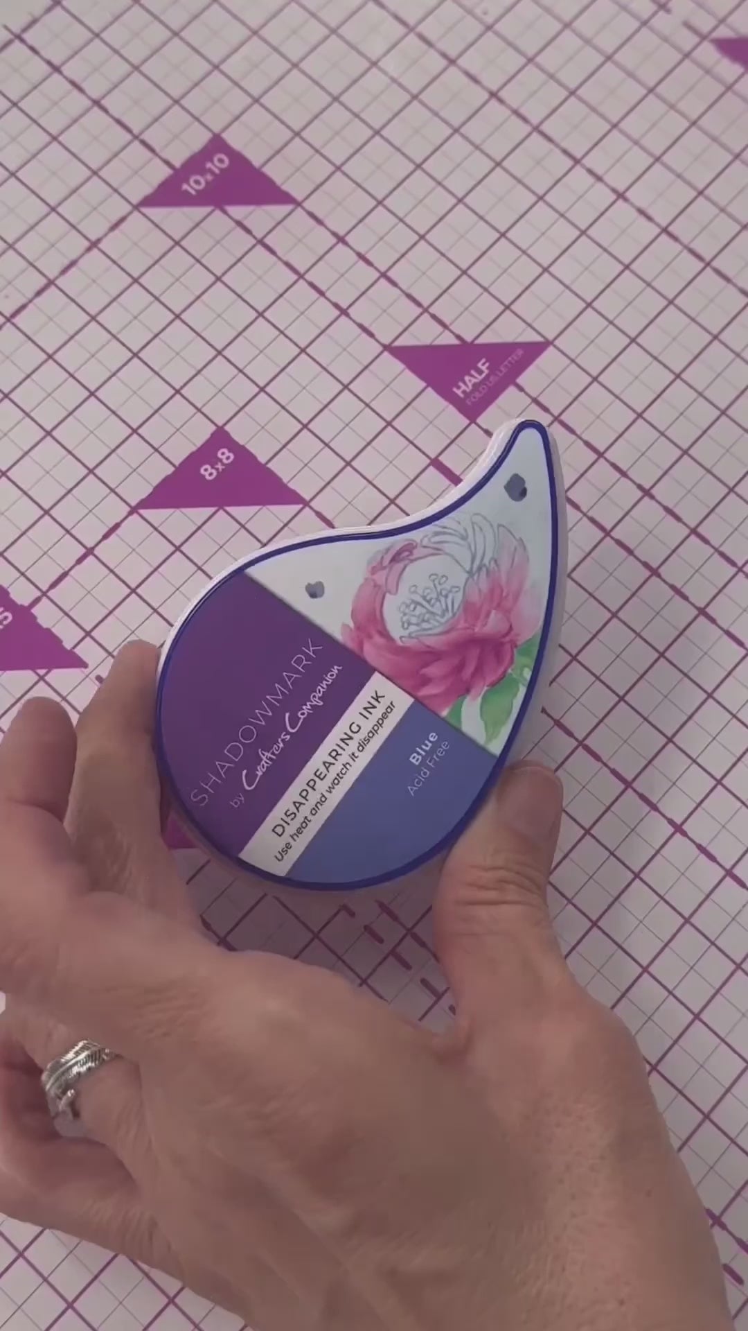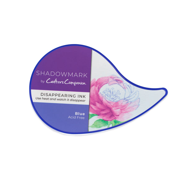 Shadowmark Inkpad - ink is blue when applied. Stamp and colour an image then use a heat tool and watch the ink almost disappear!