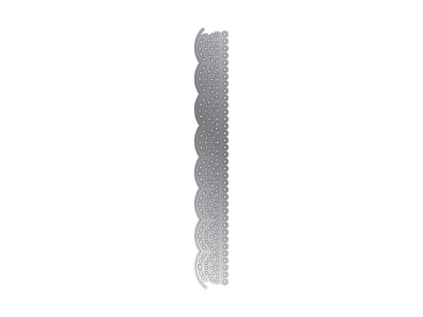 Pair this metal die with card or paper to cut a scalloped, lacy border in perfect, intricate detail. A sweet and feminine finish for celebration cards and party invitations.