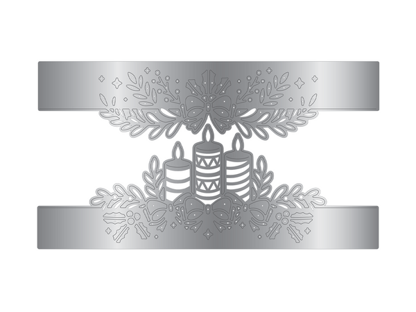 - Includes two metal dies to create the scene of lit candles with festive foliage and bows.