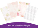 Embrace the fusion of romance and nature with the charming colour palette of gorgeous pinks and greens with the Garden of Love Digital Paper Pad. With 16 designs to download and use to your heart’s content, there are sheets filled with romantic sentiments and pastel florals.