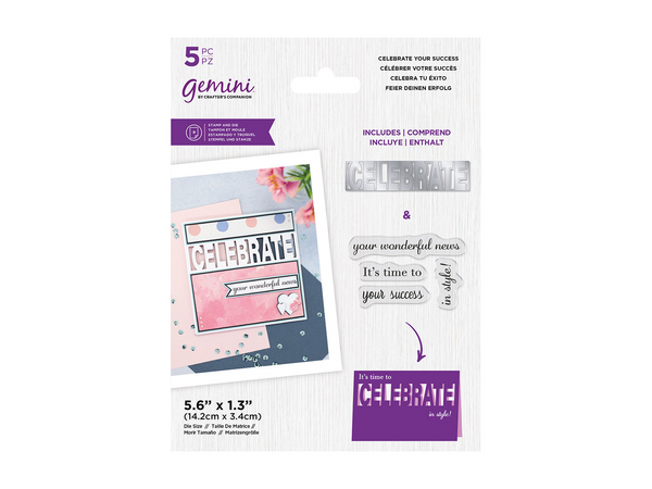 With the Celebrate Your Success set, you will receive one die to cut out a 'CELEBRATE' sentiment in a bold large, capital font plus four accompanying stamps to enhance your message. The stamps allow you to customise your sentiment by choosing from a range of additional phrases including 'In Style!', 'Your wonderful news', 'It's time to' and 'Your Success'.