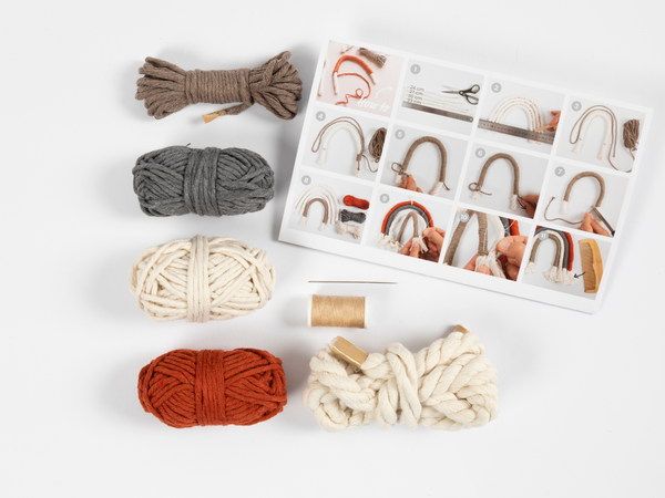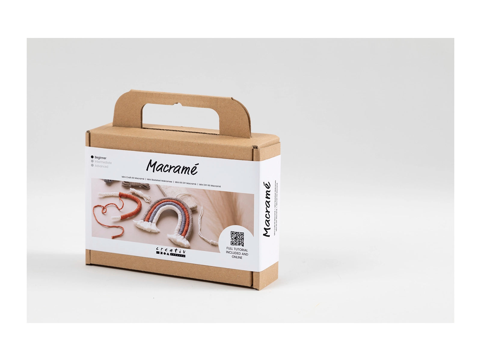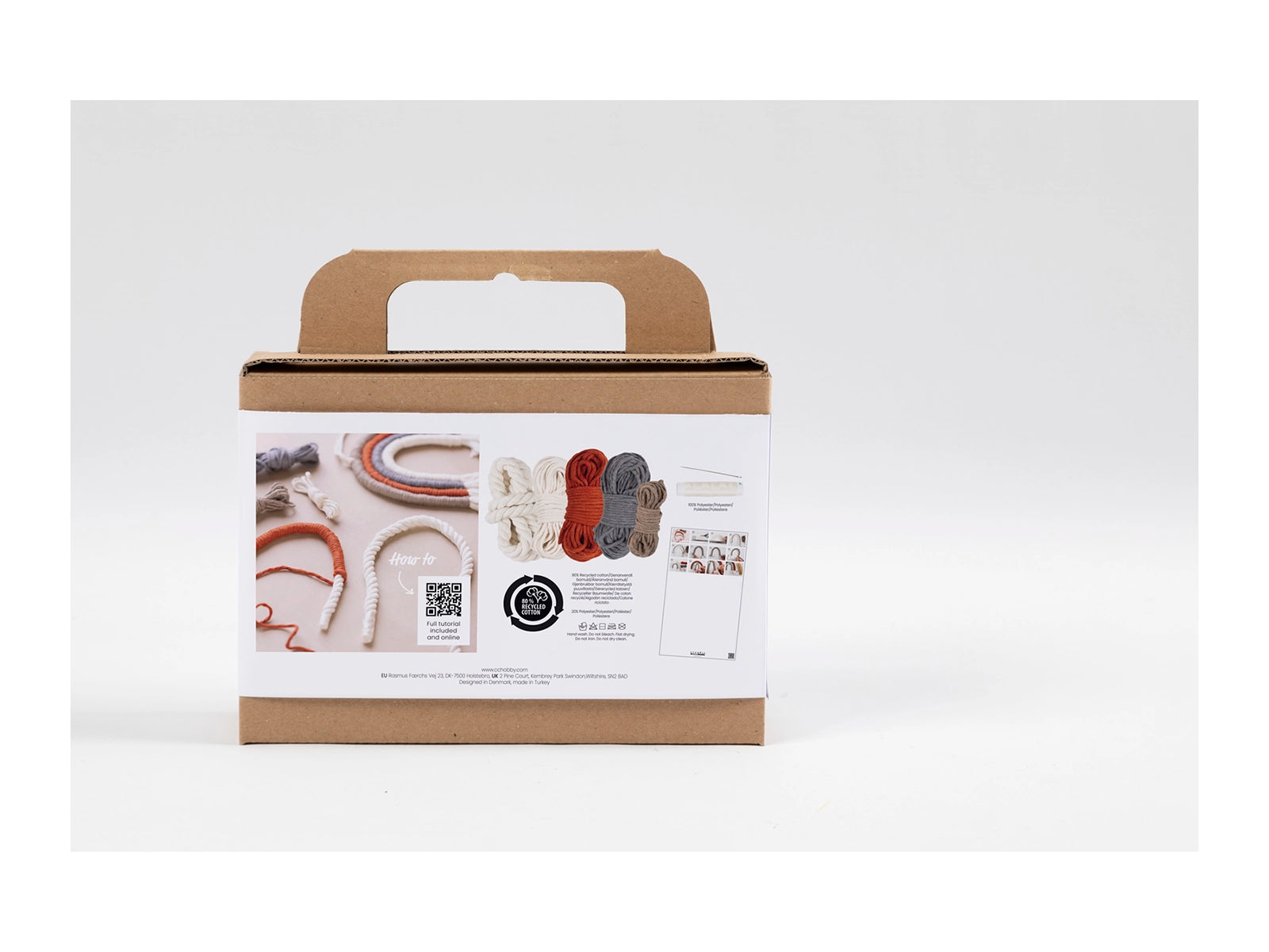 If you want to learn how to make your own macramé rainbow, this Mini Craft Kit is perfect for you. Everything you need is included in the kit. Wrap the macramé string around the rope and finish with a macramé Gathering Knot. Finally, sew the arches together using needle and thread. The result is a beautiful rainbow that can be used to decorate your home. Find the instructions on the back of the box – or scan the QR code and follow it online.