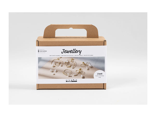 With this kit, you can make jewellery using jewellery wire and beads. Create trendy earrings – both spirals and bows – as well as a unique ring. The kit comes with all the materials and instructions you need .