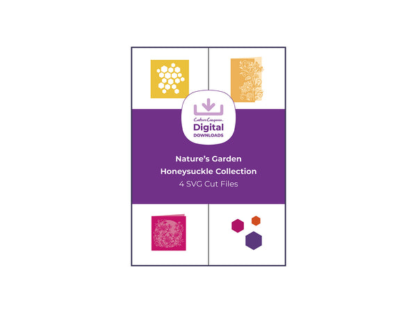 Let the colour and warmth of a cottage garden bloom bright in your handmade crafts with the Nature’s Garden Honeysuckle SVG Dies from Crafter’s Companion. This set of four designs features a geometric honeycomb, a vine of rambling honeysuckle flowers, and a circular frame holding delicate honeysuckle flowers and foliage, perfect for your handmade greeting cards, scrapbook pages, and more.