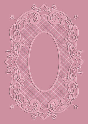 An opulent setting - The Vintage Rose Baroque Frame 2D Embossing Folder creates a raised and embossed design of an oval frame, filled with swirls, filigrees and a trellis pattern. It's the perfect backdrop for elegant cards, event stationery or keepsake gifts.