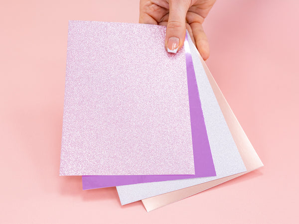 This pack includes 48 sheets total of glittery and mirrored card in a range of colours, with the glitter card being rose gold and silver and the mirrored card in lilac and rose gold. Perfect for adding an elegant touch to your handmade cards, gift boxes, and more.