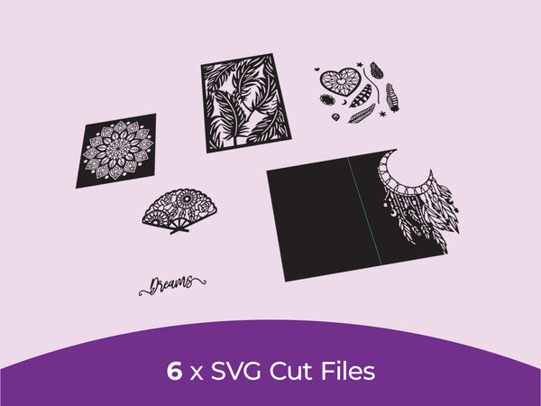 - 6 designs in a SVG Cut File format to use with an SVG-compatible cutting machine.
