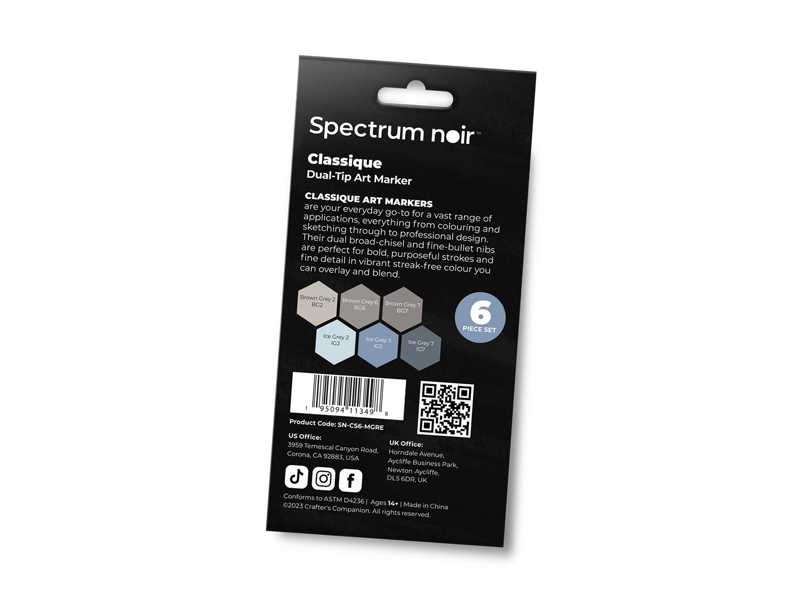 - Pack of Classique markers from Spectrum Noir in six shades of grey.